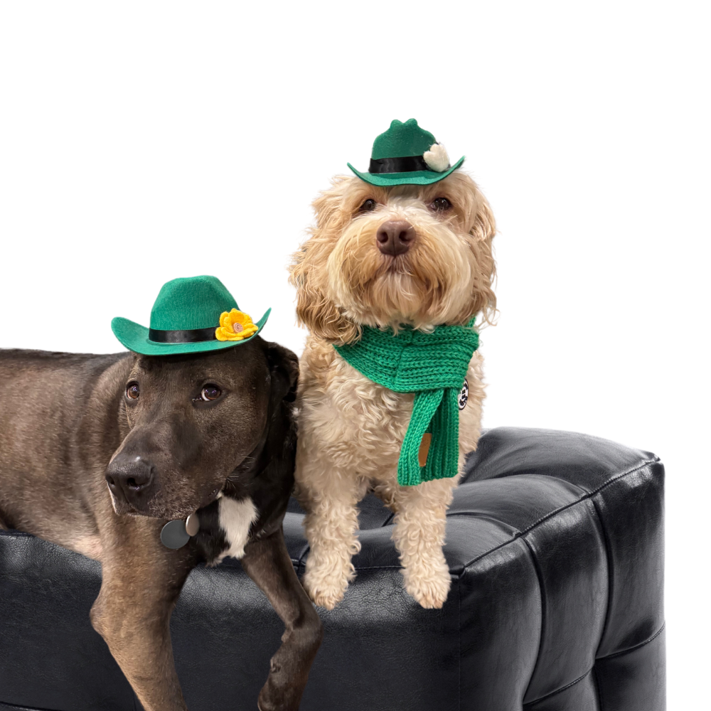 Add one of our fun green dog cowboy hats for St. Patrick's Day!